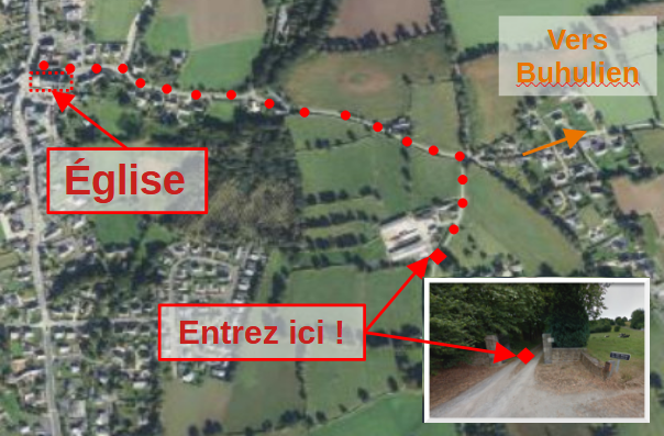 Au premier bosquet d'arbres sur la gauche, il y a un portail, c'est là !
